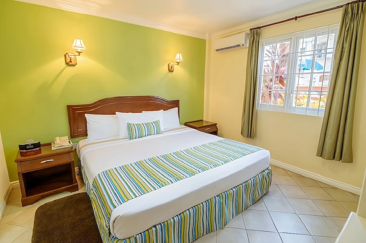 Detta enkelrum kommer att ge tropisk avkoppling med precis vad du behöver i ditt sovrum. Ditt stora sovrum hade luftkonditionering, en smart-tv och ditt privata badrum. Du kommer även ha tillgång till full fastighet med pool och lounging områden. Vissa rum har minikylskåp och det finns också ett allmänt område med kylskåp, strykbräda och kontor. Inga detaljer förbises på denna charmiga och exklusiva plats att bo på på. Vi har 17 enkelrum på fastigheten, därför kan vänner och familj också boka.