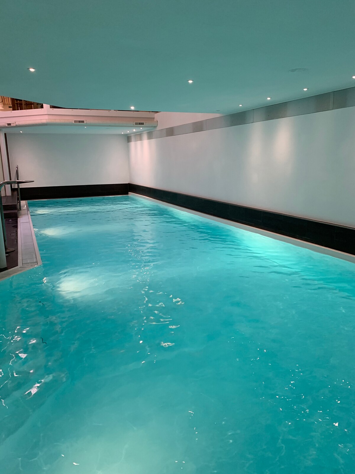 En charmig, elegant och vackert inredd lägenhet med högt i tak, möblerad enligt högsta standard och fullt utrustad med en egen terrass där du kan njuta av en mysig och minnesvärd vistelse och den mest fantastiska panoramautsikten. Du får tillgång till delade premiumfaciliteter, inklusive en pool, bastu, bubbelpool och ett fitnessrum, vilket ger en äkta wellnessupplevelse i alpstuga. Och till en stor salong med högt i tak, öppen spis och en stor terrass med utsikt över bergen.