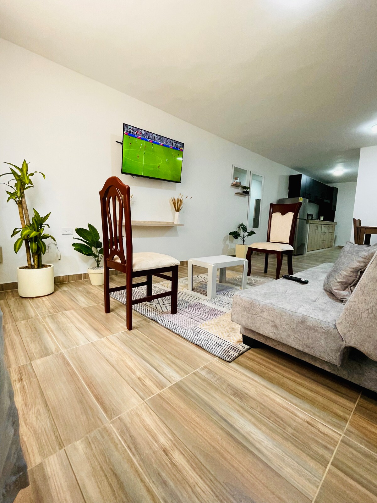 ¡Bienvenido a tu hogar lejos de casa! Este apartamento es como un abrazo cálido en medio de la tranquilidad de Ginebra, nombrado pueblo mágico del Valle. Este inmueble con su decoración moderna y acogedora, hará que te sientas como en casa. Cada rincón ha sido diseñado para tu comodidad y disfrute. Desde este apartamento estarás a solo 30 minutos del aeropuerto, a una hora de Cali, a unos pocos metros de supermercados, del parque principal y de una amplia variedad de restaurantes campestres.