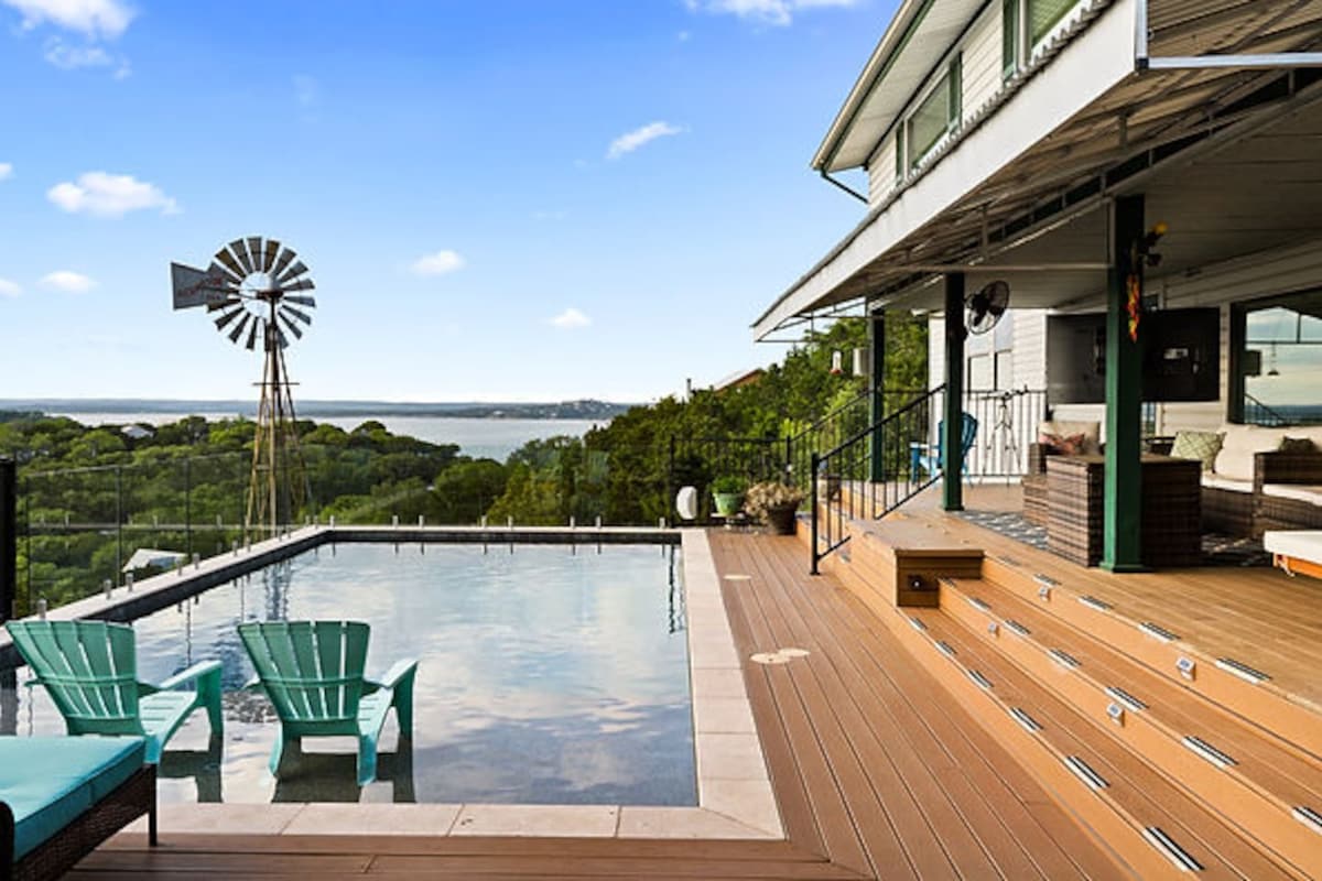 Oändlig utsikt, uppvärmd pool, Hill Country Paradise