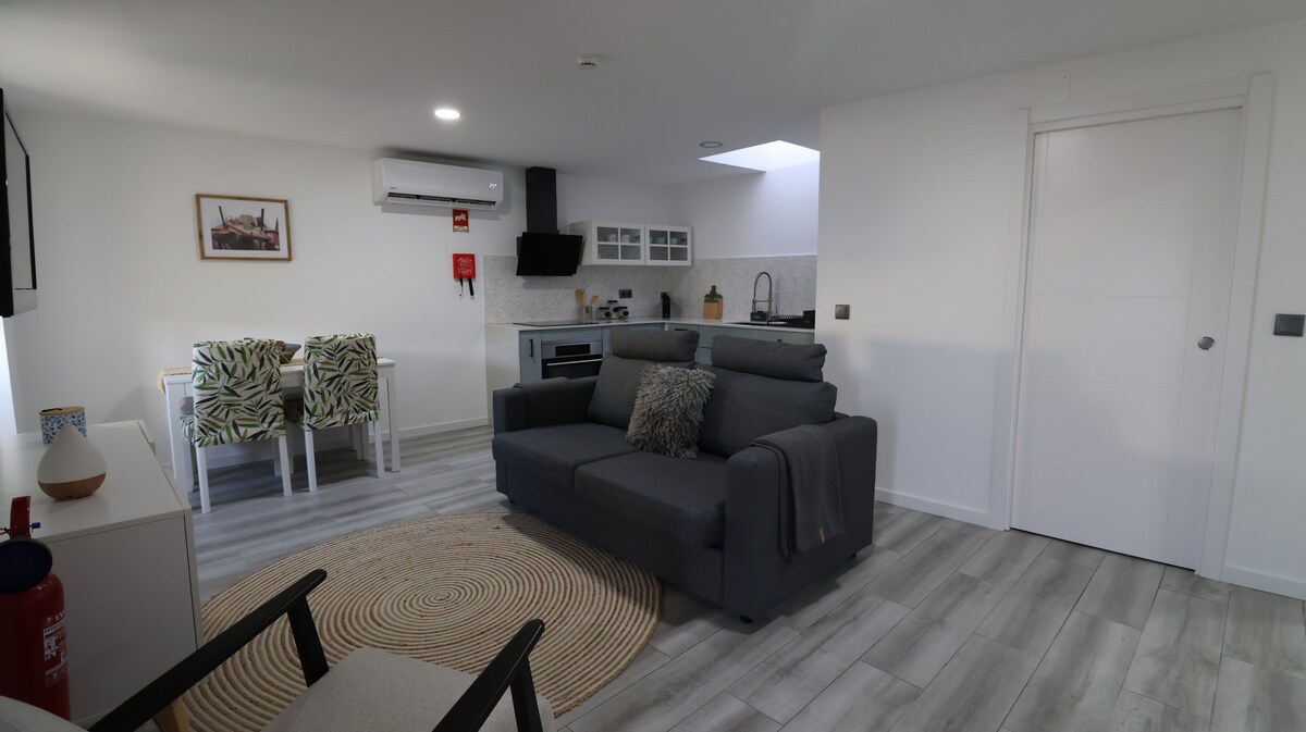 Hela denna våning har ett sovrum med en dubbelsäng, ett annat sovrum med två enkelsängar, bäddsoffa, fullt utrustat kök och uppvärmd toalett. Den uppvärms med luftkonditionering i vardagsrummet / köket. 40-tums Smart TV med 100+ kanaler, NETFLIX, 100mbs Fiber Internet. Bärbar utomhusgrill med kol. Kaffebryggare, salt, vinäger, olivolja, socker och kaffe. Vi erbjuder schampo / gel, handdukar och rena lakan för varje gäst. Vi använder Ozono-teknik för maximal sterilisering av stället.