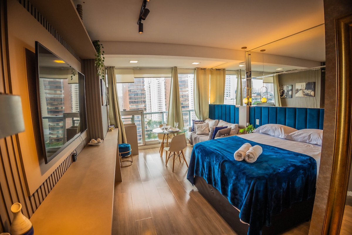 Välkommen till Studio 1310 – ett unikt utrymme som kombinerar elegans och funktionalitet. Studiolägenheten har en högklassig inredning och utformades för att erbjuda komfort och funktionalitet, vilket gör den perfekt för olika typer av vistelser. Vi ligger nära Guarulhos internationella flygplats, med enkel tillgång till restauranger, marknader och nödvändiga tjänster. Boendet erbjuder en trevlig utsikt över staden, perfekt för avkoppling mellan flyg eller för att njuta av en bekväm vistelse nära São Paulo.