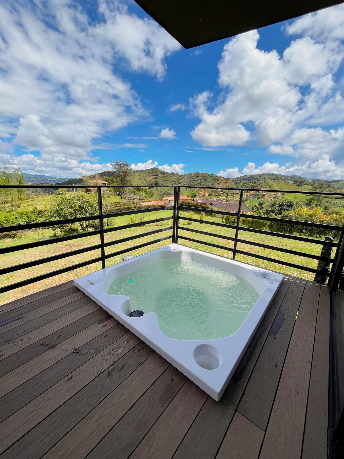 "Njut av charmen och lugnet i vårt lilla sjöhus med det bästa läget, en perfekt 100 % privat tillflyktsort mitt i naturen. Koppla av i en lyxig jacuzzi medan du beundrar den unika utsikten över dammen och den berömda Piedra del Peñol. Det har också en öppen spis och ett fullt utrustat kök för alla dina kulinariska behov, en uteterrass och en brygga. Perfekt för upp till 4 personer, det är den perfekta platsen att koppla av och skapa oförglömliga minnen."