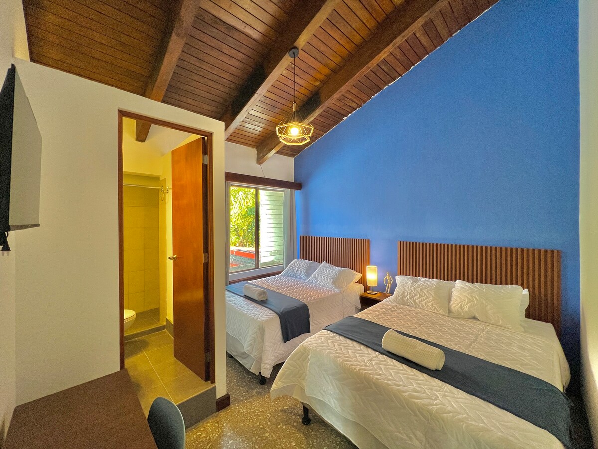 Njut av vårt Queen Room, där du kommer att ha en lugn vistelse och en vila full av komfort, samt ett utmärkt läge, nära de viktigaste shoppingcentren och företagen i Villa Nueva.