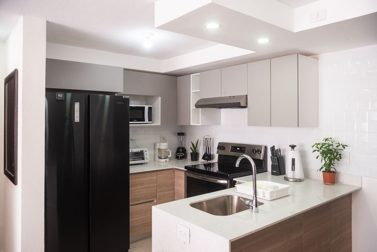 Helt ny modern lägenhet mitt i zon 4, perfekt för sightseeing eller affärsresenärer: en mängd restauranger, kaféer, pubar och konstgallerier för promenader runt. Huvudrum med dubbelsäng. Vardagsrum med Smart TV och extra sovsoffa. Utrustat kök, 2-i-1 tvättmaskin/torktumlare. Kostnadsfria tjänster: WiFi, parkering, 24 timmars säkerhet. 5 minuter från: Torre del Reformador, Civic Center, National Theather, Centro Médico och andra sjukhus, Oakland Mall.
