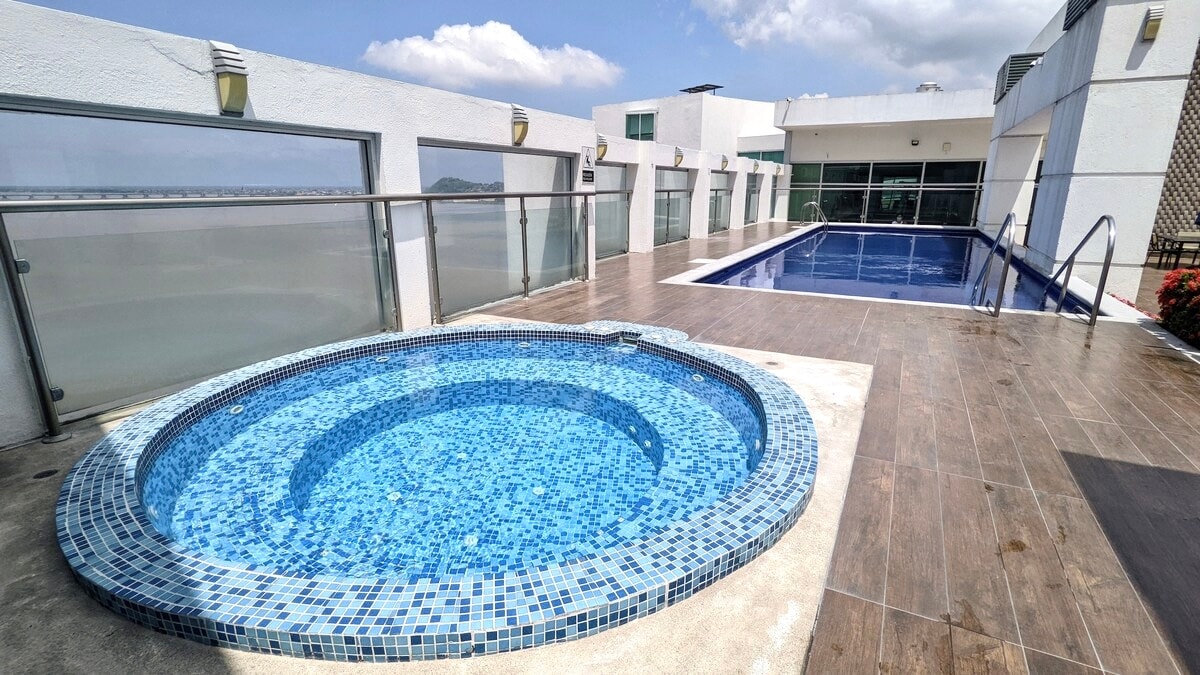 Njut av elegansen och komforten i vår svit i det exklusiva området Puerto Santa Ana, omgivet av utmärkta restauranger, kaféer och utomhusutrymmen bara några steg bort. Dessutom får du tillgång till vårt sociala område med pool, bastu, jacuzzi och gym, med imponerande utsikt över Guayas River så att du kan koppla av och ha kul under din vistelse.