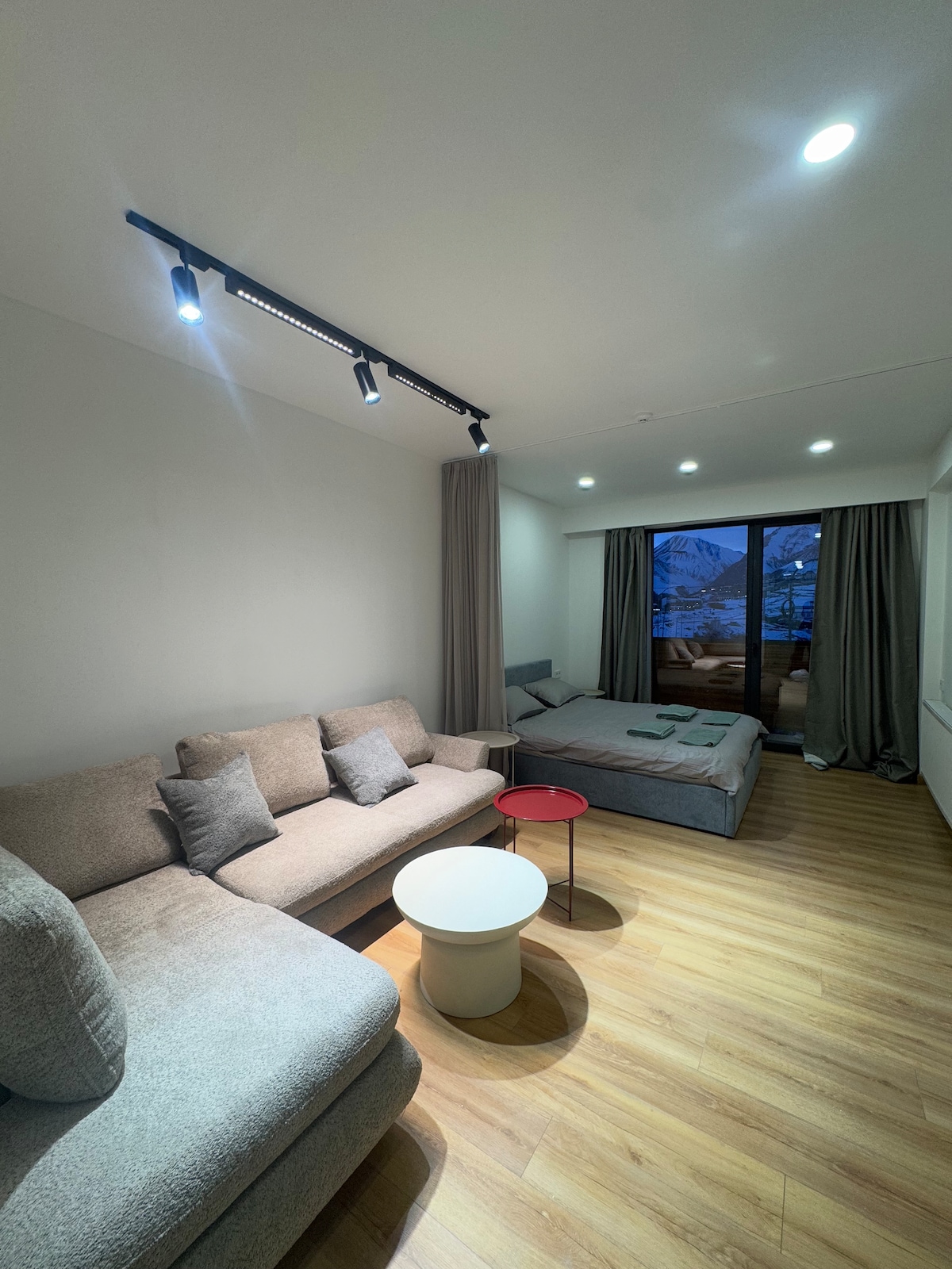 Välkommen till studion i Gudauri, Georgien, på en höjd av 2200 meter! Ny renovering med trä och sten skapar en mysig bergsatmosfär. Perfekt belysning, funktionella områden — vardagsrum, sovrum, kök med panoramafönster som ger naturligt ljus. Den soliga sidan erbjuder fantastisk bergsutsikt. Nära till skidlift, butiker och restauranger — perfekt för en skidsemester. Denna studio kombinerar stil, komfort och funktionalitet för en oförglömlig semester.