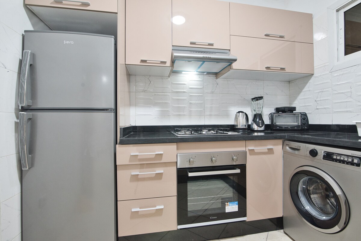 Njut av en lugn vistelse i denna rymliga, väl inredda lägenhet i Al Houda. Med två sovrum, en stor terrass, fullt utrustade bekvämligheter och gratis säker parkering ligger det perfekt nära butiker och kaféer bara 10 minuter från stranden. Lugn komfort garanterad.