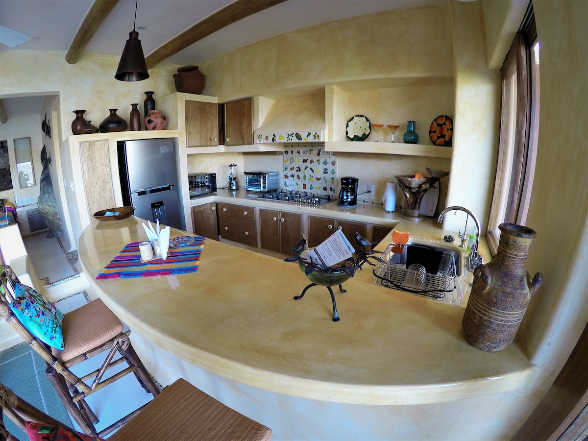 "El Mango" är en fantastisk casita med total integritet och spektakulär utsikt över Zihuatanejo Bay och Stilla havet. Beläget högt ovanför Playa La Ropa och Las Gatas är det bara en kort promenad till båda. Inbäddat i denna idylliska miljö är "El Mango" omgiven av frodiga trädgårdar och tropiska fruktträd. Ja, det är ett mangoträd som hänger över balkongen. Det är en tvåvånings walkup. Sitt ute på balkongen vid solnedgången och smutta på din favoritcocktail eller njut av stänkpoolen och panoramautsikten.