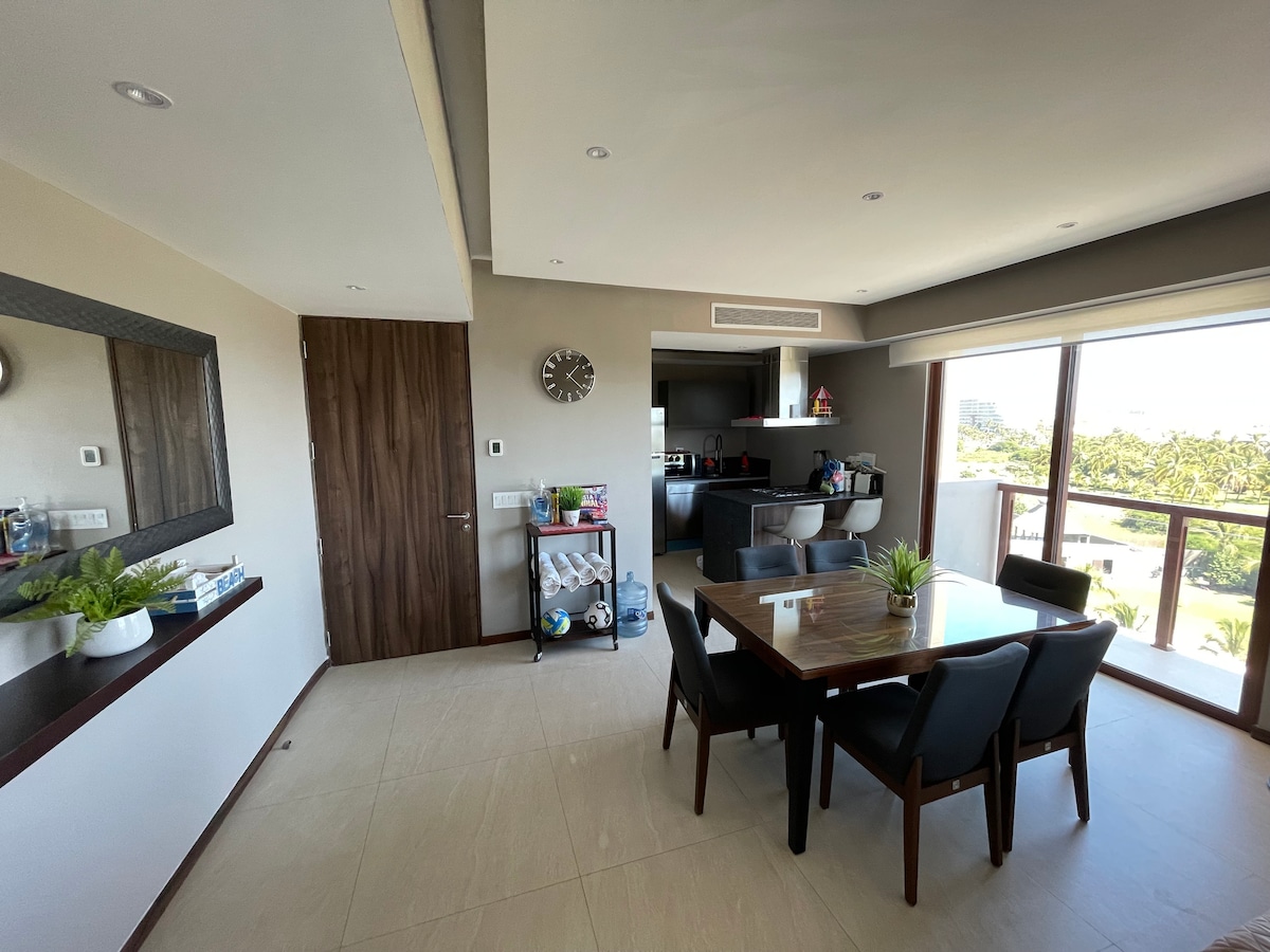 Upplev Acapulco Diamante i en av de bästa utvecklingarna med förstklassiga bekvämligheter. Rymlig lägenhet i La Isla Residences med strandtillgång, 3 paddle tennisbanor, 2 tennisbanor, mer än 10 pooler, klubbhus, spa, gym och restauranger. Perfekt för avkoppling utan att lämna komplexet. 3 sovrum, 3 fulla badrum, utrustat kök, WiFi och 2 parkeringsplatser. Stort rum med en 50-tums smart-TV Kök utrustat med diskmaskin Matrum för sex personer 80 Mbps WiFi