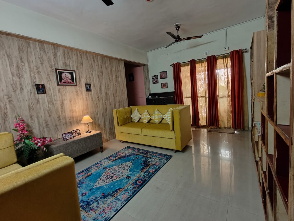 Bo i en arkitektens egen omsorgsfullt utvalda 3BHK-lägenhet mitt i Ahmedabad! Ett uppfriskande boende med gott om naturligt ljus och ventilation. Eftersom interiören är ren och inredd i en lugnande neutral färgpalett med subtila detaljer blir den ett perfekt val för alla resenärer. Utformat för gäster som värdesätter/uppskattar komfort och renlighet. Perfekt för familjer (spädbarn/barn), affärsresenärer, grupper, företagsgäster osv. för kortare eller längre vistelser.
