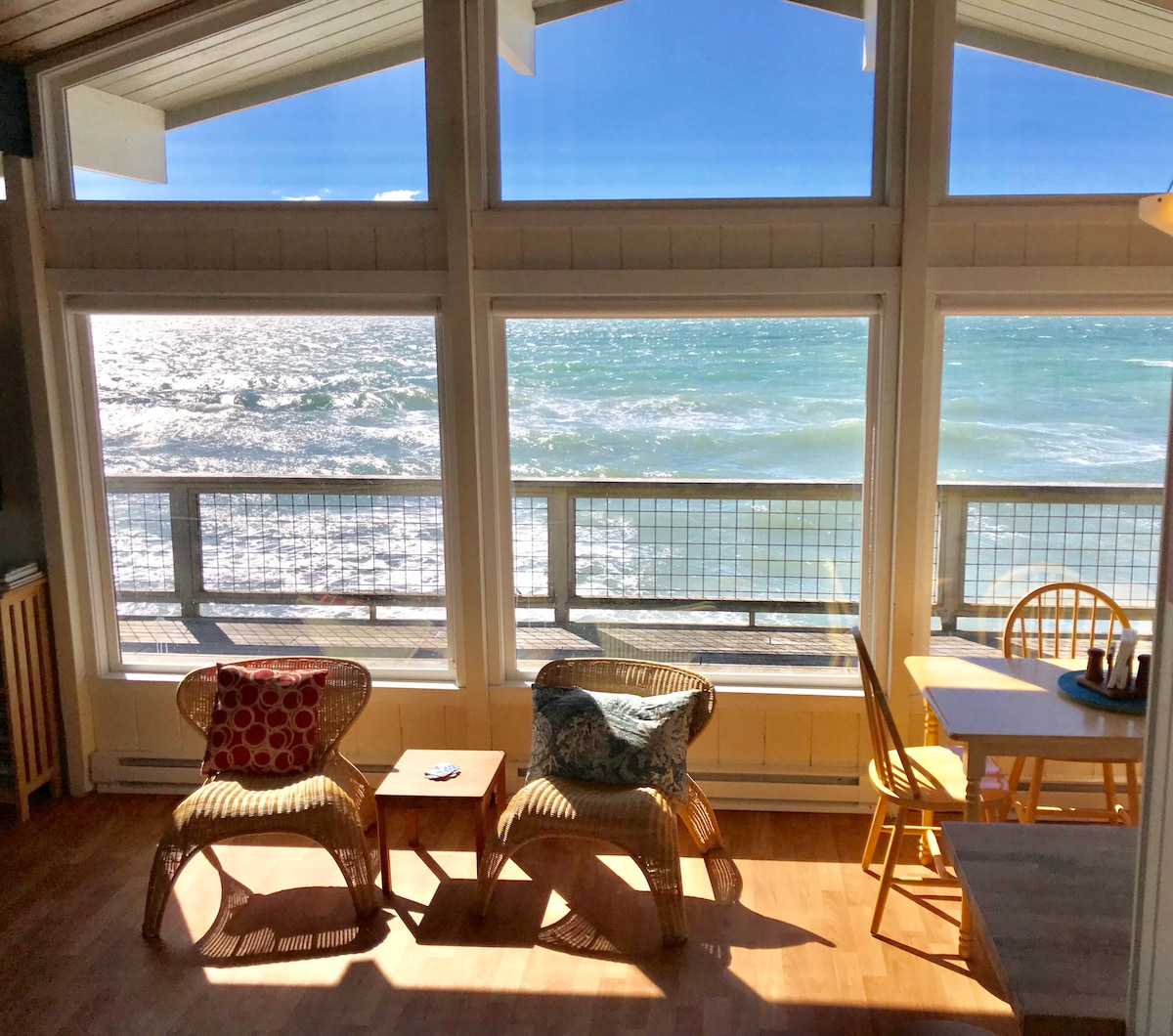 5-stjärnigt: Högst betyg! Med våra gästers ord: "Det är som att bo på en båt", "Allvarligt vid vattnet", "Magisk plats", "Sunrise & Sunset Heaven"! Sunset Beach Haven är en klassisk strandstuga med 2 sovrum och ett badrum, uppdaterad med moderna bekvämligheter och nytt toppmodernt kök! NYHET! Säsongsbetonade luftkonditioneringsenheter för sovrumsfönster. Njut av fenomenal utsikt över de olympiska bergen, Juan de Fuca-sundet, San Juan-öarna och Swantown Lake (ja, 360 vattenutsikt). Njut av den vilda sidan av Whidbey!