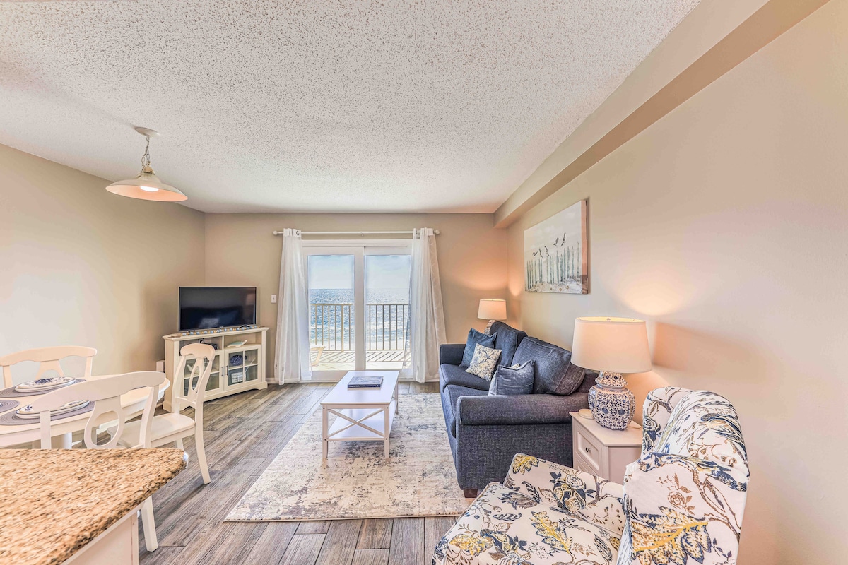 1 sovrum + våningssäng ~ Strandnära med utsikt, sovplatser för 7! • Fantastisk direkt utsikt över Gulfens vita sandstränder • Master King Suite med jacuzzi badkar master badrum • Balkong 8' x 24' över hela enheten komplett med bekväma utemöbler - perfekt för strandskådning • SMART platt-TV, tvättmaskin och torktumlare i full storlek • Strand, gångavstånd till restaurangerna och nattlivet • Betald parkering på plats