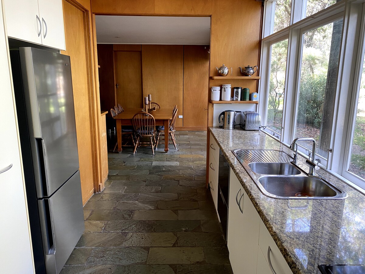 Du kommer att bli Udder-ly förvånad över att detta helt renoverade boende en gång var ett fullt fungerande mejeri. Rymligt men mysigt kök, matplats och vardagsrum i öppen planlösning. Valvade trätak och ursprungliga ståltakbjälkar. Köket har allt du behöver, inklusive diskmaskin, ugn och kaffemaskin. Sitt och sjunk ner i den bekvämaste soffan och mys upp dig för att titta på en film eller fotboll på TV. Men om du är här för att koppla bort digitalt har vi en bush-TV (eldstad utomhus), brädspel och bushwalks!