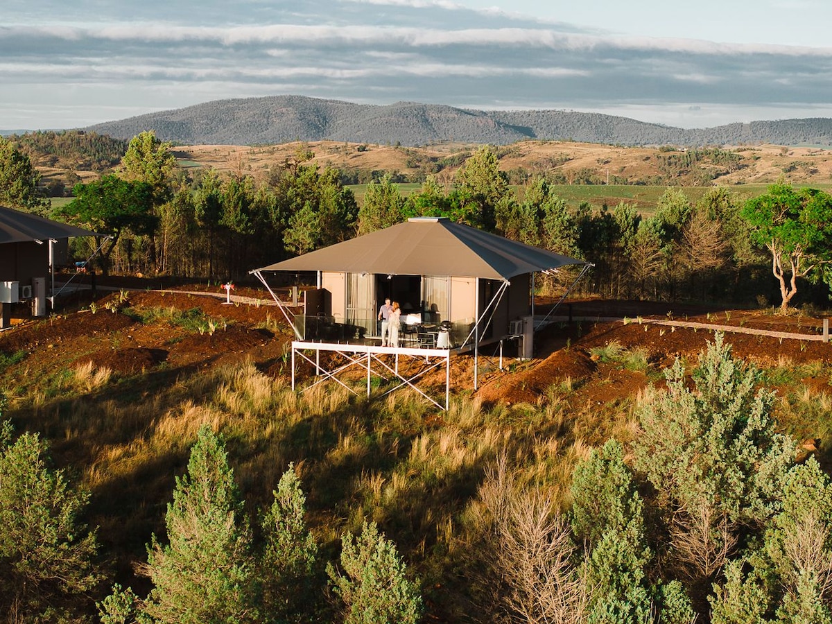 With a light environmental footprint, our tent combines the charm of camping with the sophistication of a boutique hotel. Stay in premium glamping comfort with each offering plush interiors and breathtaking 180 degree water and mountain views. The tent features a skydome, perfectly positioned for stargazing from your king bed and are fully insulated & air-conditioned for comfort all year round. Opening to an expansive deck with outdoor bath, our tents offer the ultimate outback experience.