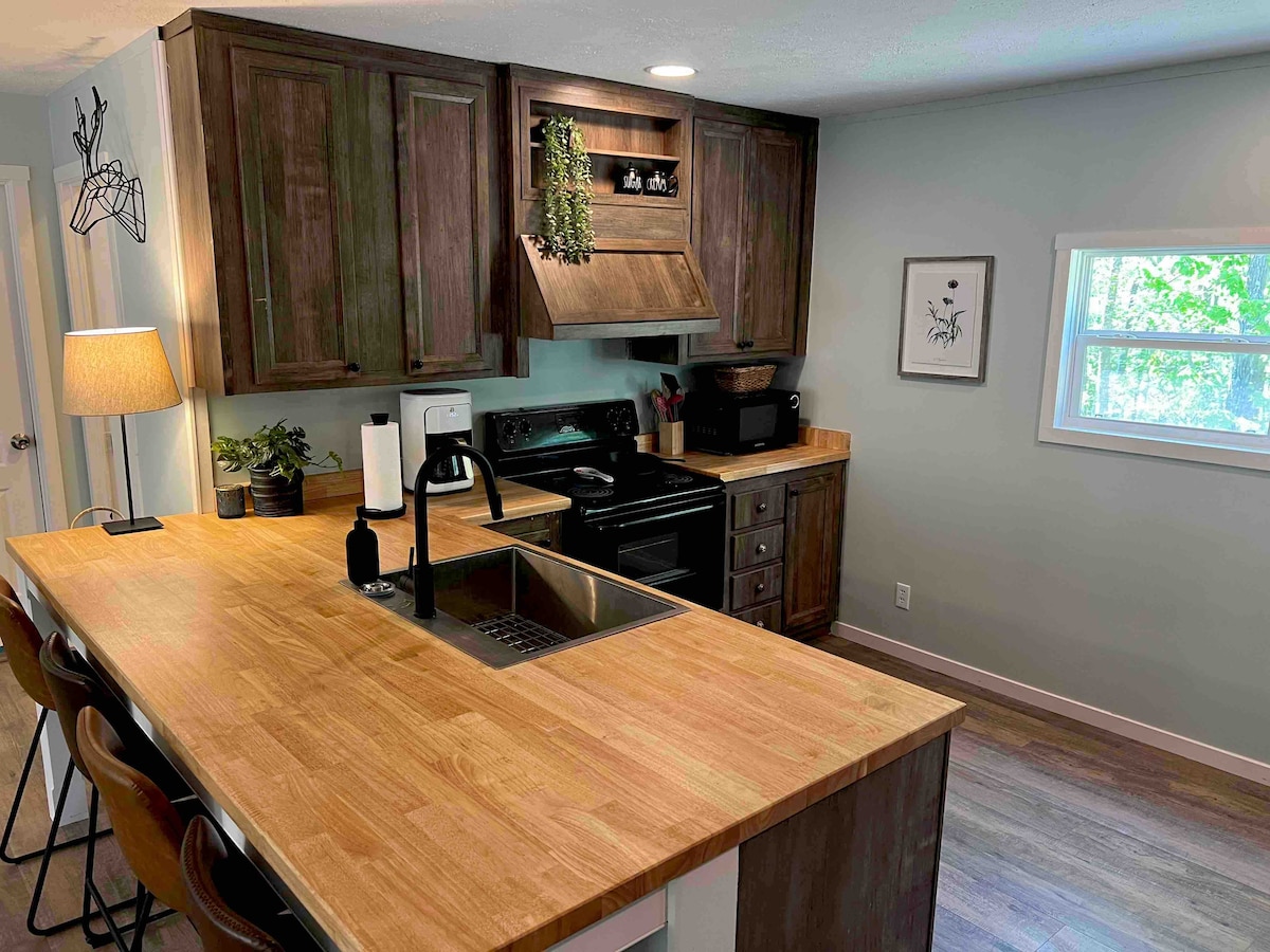 Perfekt familjevänlig semester vid Tims Ford Lake. Stugan ligger på en vacker, helt skogig tomt. Du har tillgång till Holiday Landing Marina via en golfvagnsväg. Oavsett om du vill åka båt på sjön, vandra i närliggande Tims Ford State Park, eller bara umgås med familj och vänner, leta inte längre! Detta stora öppna koncept, mysigt, rymligt, 3-nivå hem är allt du behöver. Helt ny inredning och madrasser! Vårt utrymme inkluderar också 5 stora 4K ROKU TV.