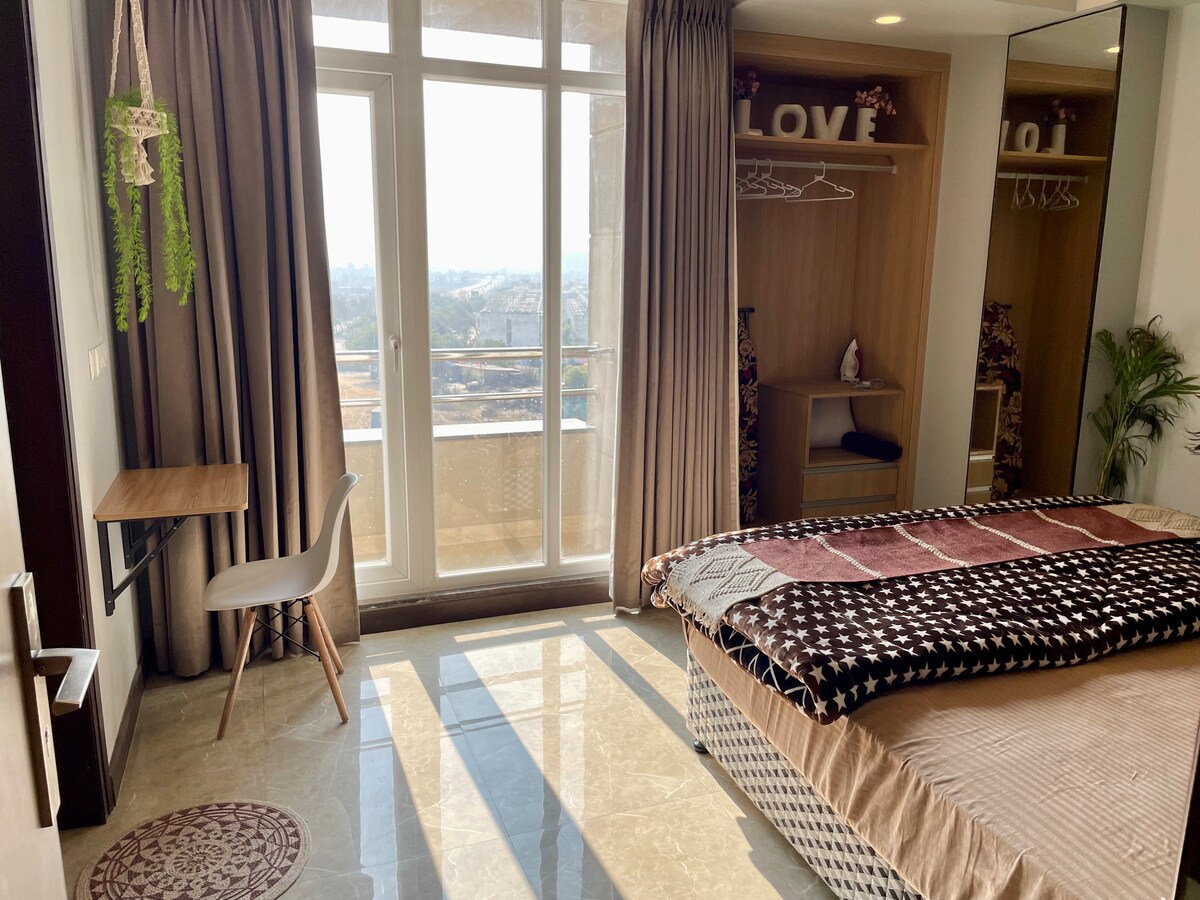 Lyxigt 3 BHK Smart Home | Redo för arbete hemifrån | King size-säng | Fullt utrustat kök | Tydlig vy | Netflix och bibliotek | Gratis städare | Kock på begäran. Nr. Golf Course road & Worldmark Gurgaon| 4 minuter från Hilton & Grand Hyatt Hotel | 10 minuter från Worldmark/Sektor 58 *15 minuter från One Horizon/DLF Golf Course/Artemis Hospital | 20 minuter från Sohna Road/Medanta/Fortis Hospital | 25 minuter från DLF Phase 1/MG road & Cybercity | Perfekt för medicinska/företags/expat/NRI-resenärer som kommer till Gurugram [INTE TILLGÄNGLIGT FÖR FESTER]