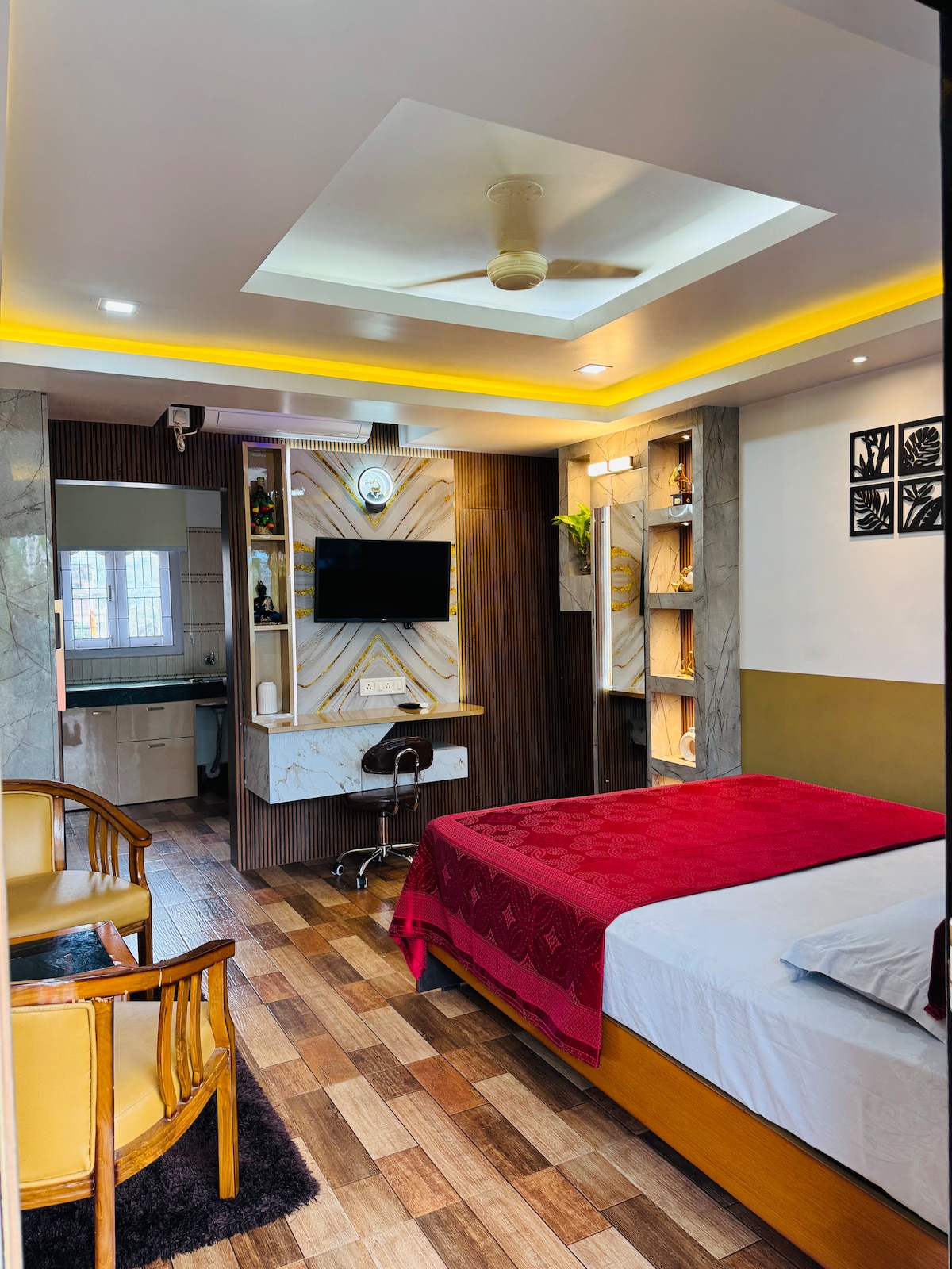 Saanj Studio– Nook är en genomtänkt modern studiolägenhet i Azara, bara 5–10 minuter från Guwahati flygplats. Perfekt för tidiga morgonflyg och sena ankomster, familjer, par och ensamresenärer, erbjuder det en lugn, bekväm miljö med pålitligt Wi-Fi, varmt vatten och sömlös självincheckning. Studion ligger nära varuhus, apotek och lokala restauranger, med Zomato, Swiggy och BigBasket tillgängliga för mat och dagliga nödvändigheter.