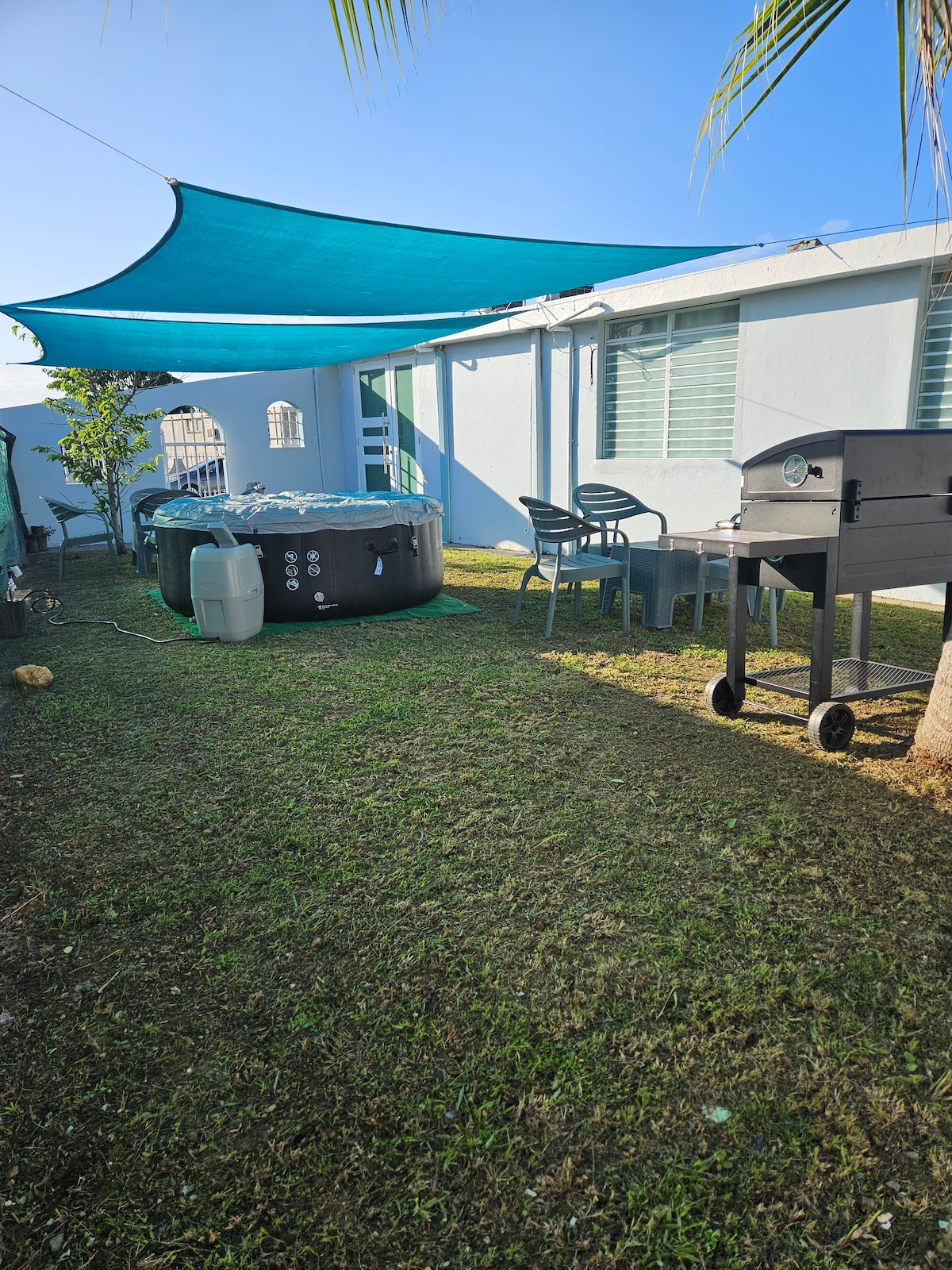 Vi erbjuder våra gäster ett utrymme med kök och grundläggande redskap. Köket har mikrovågsugn, brödrost, ugn, kaffebryggare och kylskåp. Vardagsrummet har en möbel, luftkonditionering och en matsal. Vi erbjuder ett rum som består av en dubbelsäng, luftkonditionering, en liten TV i rummet, WiFi och Roku (med eget konto). Du kan också komma åt två badrum, ett inuti huset och det andra ligger i poolområdet. Det finns en 3@6 djup pool. Det finns varmvatten i bostaden.