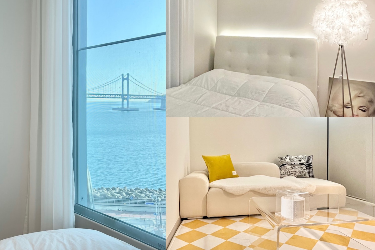 Nyöppning / Full havsutsikt / Utsikt över Gwangan-bron / Sensuella boenden / 2 sÀngar / Gratis parkering / 3 minuter till Gwangalli & 1 minut till Mirak The Market #Mr. Mention