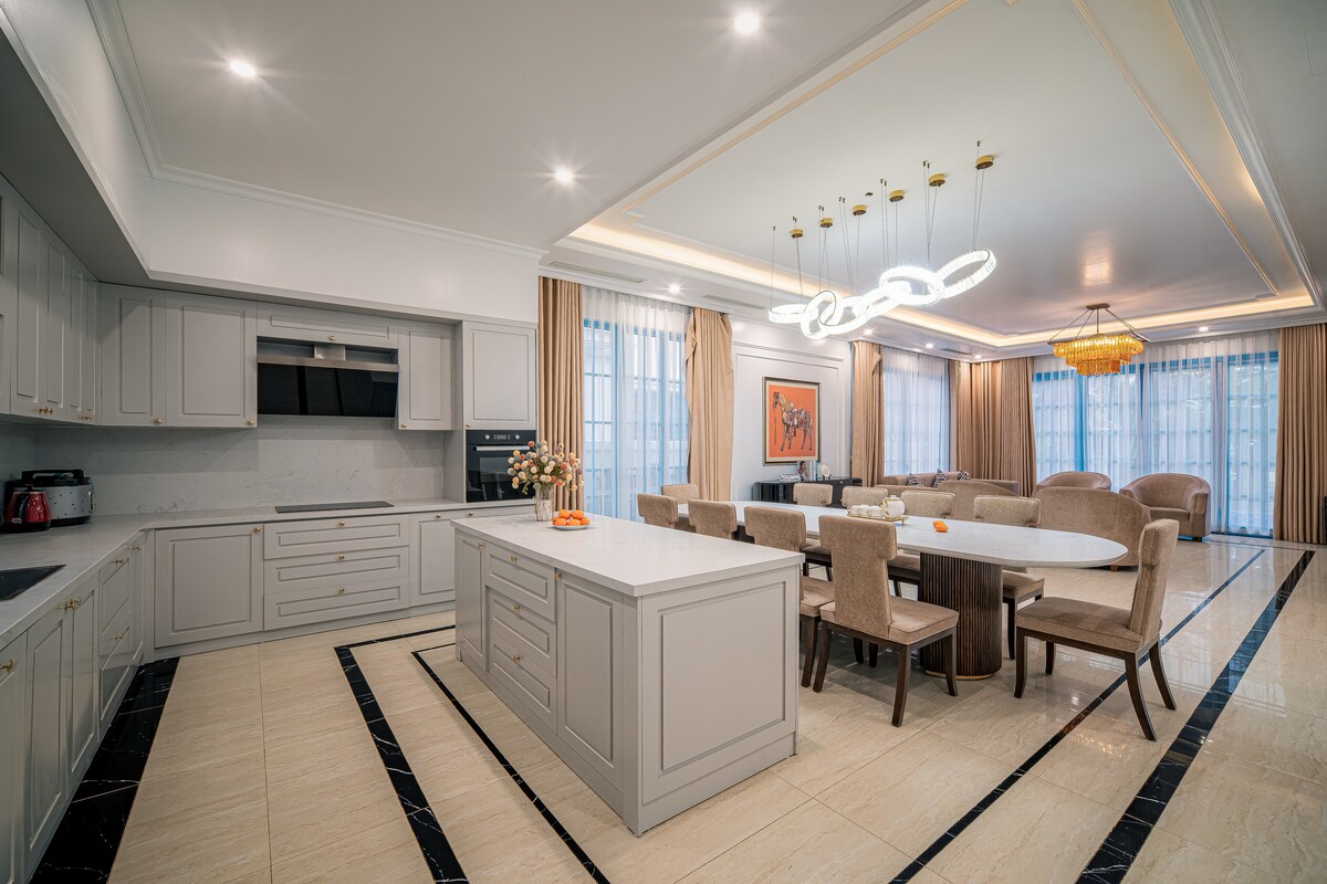 Kliv in i din egen villa i hjärtat av Ha Long. 🌟Med tre sovrum med badrum, en privat pool och en frodig trädgård är det en tillflyktsort utformad för både avkoppling och samhörighet. 💦 Koppla av i jacuzzin eller bastun, samlas i det rymliga vardagsrummet eller laga mat tillsammans i det fullt utrustade köket. 🌈 Familjer kommer att älska barnrummet, och hissen gör varje våning – sparum och tvättstuga ingår – lättillgänglig. ✨Bara några minuter från stranden, kaféer och de bästa sevärdheterna!