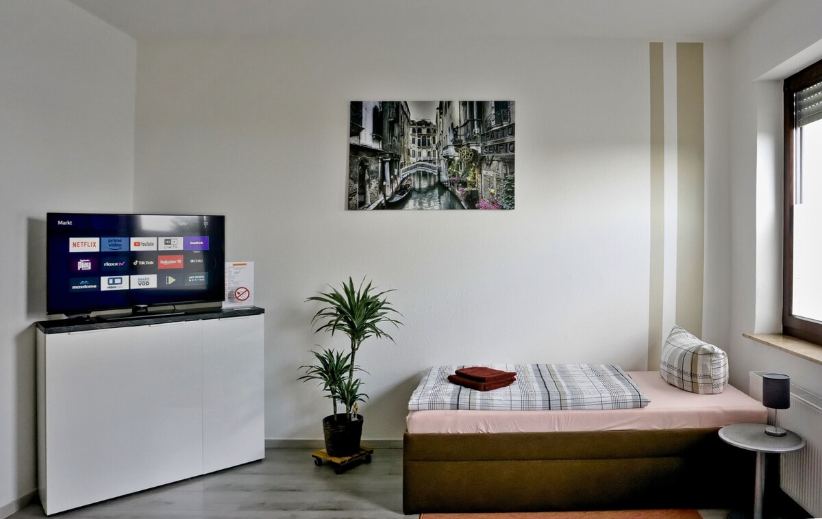 Välkommen till Solingen! Trevlig, centralt belägen källarlägenhet i en lugn sidogata. * Rymmer 1-4 personer *Sovrum: dubbelsäng 180 × 200 *Vardagsrummet: bäddsoffa (160 × 200) *Gratis parkering på tomten *Fullt utrustat kök * Nära till shopping * Mycket bra kommunikationsförbindelser (buss 200 meter, tågstationen Solingen Mitte 400 meter) *Tillgång till liten terrass med trädgårdsmöbler *Sänglinne, handdukar och badlakan ingår *Incheckning från kl. 16:00, utcheckning senast kl. 11:00