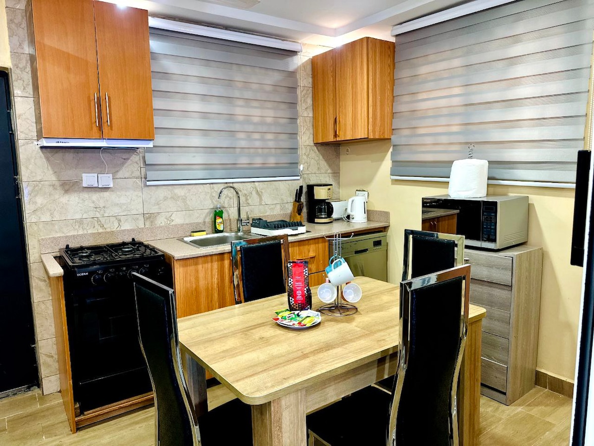 Modern komfort i en elegant, vackert upplyst lägenhet med ren modern finish och en varm kvällsglöd som omedelbart känns exklusiv och inbjudande. Beläget i ett lugnt område 19 minuter från flygplatsen, 17 från accra mall, 10 minuter från Atlantic Mall och cirka 30 minuter från Aburi Mountains, med enkel tillgång till butiker, affärsnav och fritidscenter. Du är aldrig långt borta från allt du behöver men ändå tillräckligt undangömd för att koppla av och varva ner. En chic tillflyktsort du kommer att älska att komma hem till.
