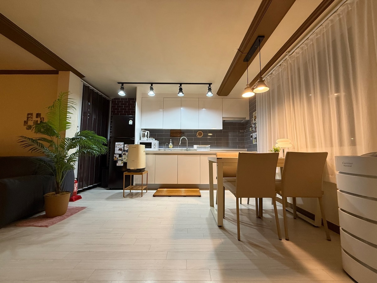 Detta är översta våningen (3F) i ett 26-pyeong stort trähus som har bevarat sin charm genom åren. Detta boende kombinerar värmen i ett gammaldags hus med elegant design och erbjuder en särskild tillflyktsort, som att bli inbjuden till en väns härliga semesterhus. Med ett rymligt vardagsrum och gott om sängkläder rymmer den upp till 10 personer. Njut av en intim hemmafest med dina nära och kära i ett fristående boende där du inte behöver oroa dig för buller mellan våningarna. Värden, som är allergisk mot damm, sköter boendet noggrant, som om det vore hens eget hem. Det är alltid rent och trevligt, utan att behöva oroa sig för insekter eller hygien. Boende beläget 5 minuter till fots från✔️ Gwangalli Beach och 5 minuter till fots från utgång 5 på Gwangan Station Mysiga detaljer med en ✔️ träkänsla Dagligt byte av✔️ sängkläder/desinfektion av rum och vardagsrum Närbutik ✔️ precis framför dig Före ✔️ incheckning är bagageförvaringstjänst tillgänglig. ✔️ Detta boende har registrerats och drivs som ett juridiskt inhemskt delningsföretag på grund av det speciella Mystament.