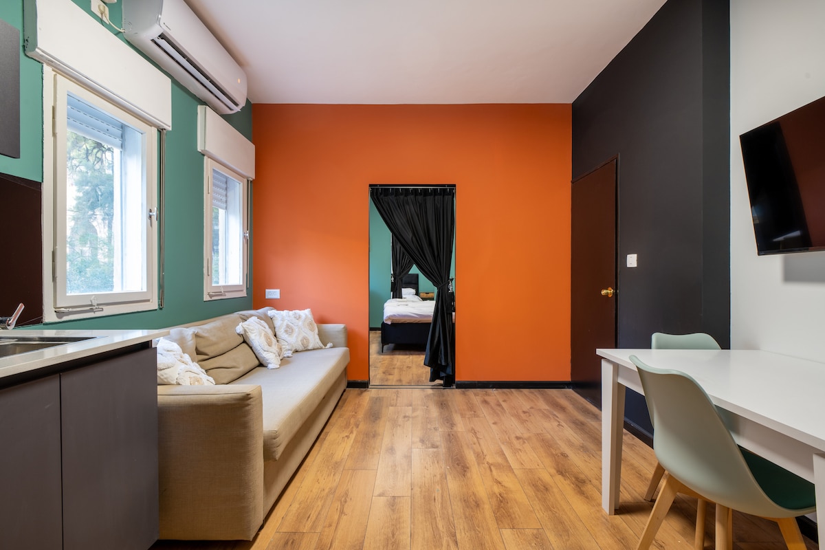 a beautifully renovated and designed historic building in the heart of Haifa’s Hadar neighborhood. The “Ehad Ha’am Urban Suites” complex features several modern apartments within the same building – the perfect solution for families, groups, and friends looking to stay together. Each unit offers contemporary design, plush double beds, a fully equipped kitchen, and high-quality bathrooms. Walking distance to the Bahá’í Gardens, Talpiot Market, museums, restaurants, and public transportation.