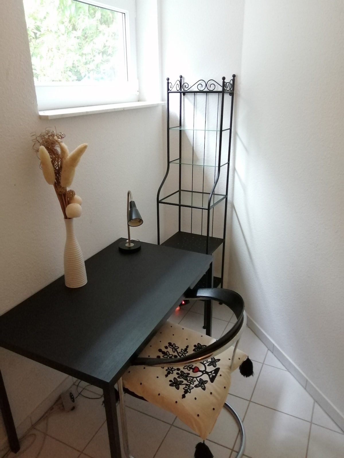 Boendet ligger i Dotzheim-Kohlheck, med snabb tillgång till skogen. Rummet med badrum är ca 19 m² stort och har en arbetsplats med bra Wi-Fi-anslutning. Sängen har en liggyta på 140 x 200 m. Närmaste busshållplats ligger ca. 5 minuters promenad och stadens centrum är ca. 10 minuters bilresa bort. Närmaste Rewe eller bageri med frukostalternativ kan nås på 10 minuters promenad.