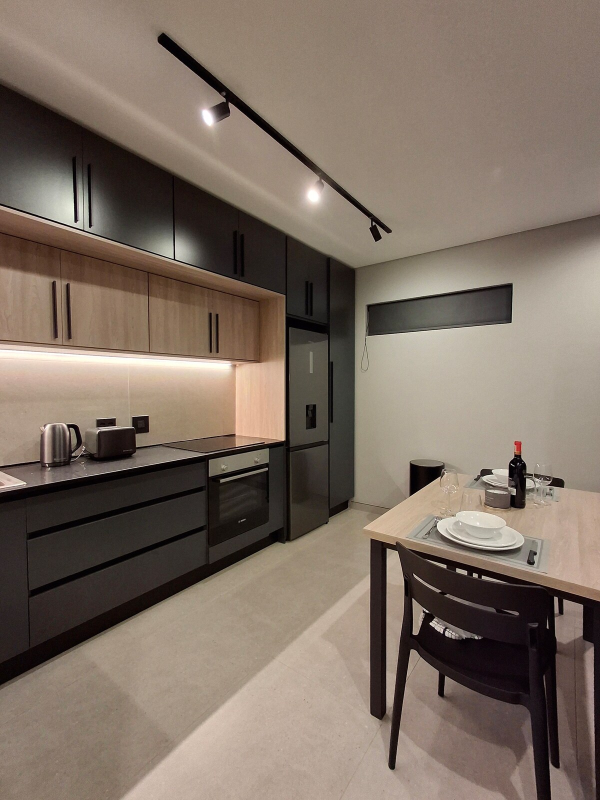 Blicka över Moot från en täckt, upplyst matplats på terrassen. Oklanderlig, ren, modern inredning flyter via skjutbara glasväggar ut på ett generöst däck. Svarta och stålaccenter kompletterar luftiga vita, mjuka gråa och organiska, jordnära toner. Vi har solenergi. Huset har tre separata sovrum med ett En Suite badrum på bottenvåningen som nås via en elektrisk grind med en liten trädgård. Vardagsrummen är rymliga och öppna med massor av ljus och en utomhuskänsla. Det finns ingen trädgård, men massor av utomhusutrymme med en otrolig utsikt över berget och dalen som är känd som The Moot. Njut av din vistelse i ett avslappnat, lättskött utrymme. Ni har hela stället för er själva! Bra kommunikation är viktigt för oss och vi kommer att svara så snabbt som möjligt. Vi svarar gärna på alla frågor om resor, sevärdheter, platser att besöka och allt som intresserar dig. Huset ligger på toppen av en brant uppfart i lugna Villieria, ett av Pretorias äldsta grannskap. Det ligger nära motorvägen, universitetet, sjukhus, ambassader och bekvämligheter. Hitta butiker, kaféer och restauranger längs vägen. Förutom Uber och taxibilar med taxameter avgår en buss till Gautrain-stationen från Webb Street i närliggande Queenswood. En busservice och en buss till Gautrain station finns bara 200 meter ner på vägen. Taxi med taxameter eller Uber finns också. Parkering för 1 bil finns tillgänglig inom fastigheten. Beläget ovanpå en kulle kan det vara en utmanande körning in i uppfarten för vissa. Det finns ett dubbelgarage med direkt tillgång till scullery. Boendet är säkert, inhägnat och har ett larm.