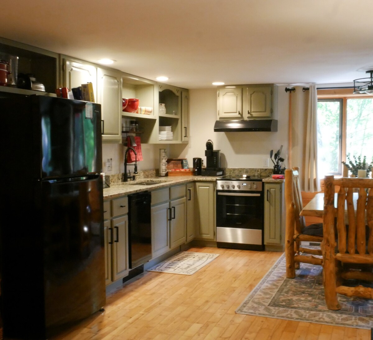 Pebble at Rock End, en del av Stay-Acadia-kollektionen, är ett renoverat studioloft i fridfulla Northeast Harbor – en av Mount Desert Islands mest natursköna byar. Promenera till marinan, kaféer, gallerier och vandringsleder in i Acadia National Park. Cykla på Carriage Roads eller besök Asticou Azalea, Thuya, Abby Aldrich Rockefeller Gardens och Seal Harbor Beach i närheten. En kort bilresa från Bar Harbor erbjuder denna retreat ett fullt utrustat kök, katedral tak, naturligt ljus och delad tillgång till gym.