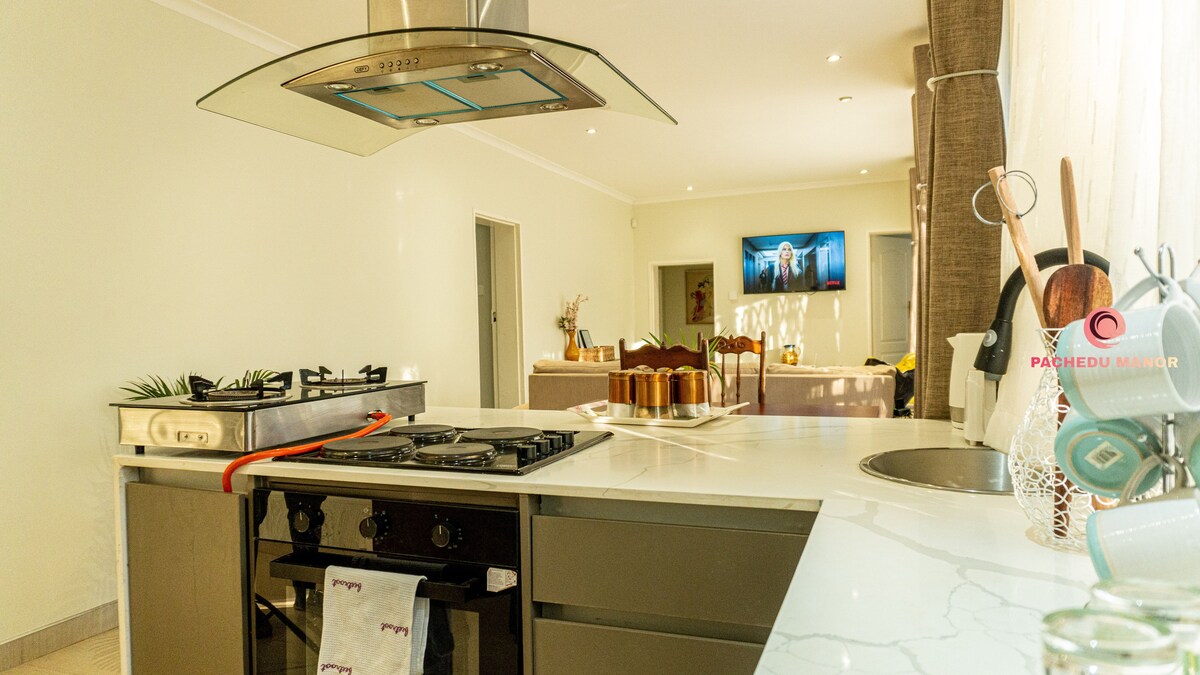 Ta det lugnt på denna unika och lugna tillflyktsort med utsikt över staden Harare. Vakna till en fantastisk 180° utsikt över kullarna, med solenergi dygnet runt och snabbt wifi – perfekt för arbete eller nöje. Utrymme ☞ Privat lägenhet med 1 sovrum och öppen planlösning ☞ Fullt utrustat kök ☞ Säker parkering ☞ Egen ingång och gäståtkomst ☞ Hela lägenheten, uteplatsen och trädgården ☞ Borrhålsvatten med 5 000 l tank Extra: Flygplatstransfer och städning (mot en avgift) Boka nu för att njuta av lugna solnedgångar över staden!