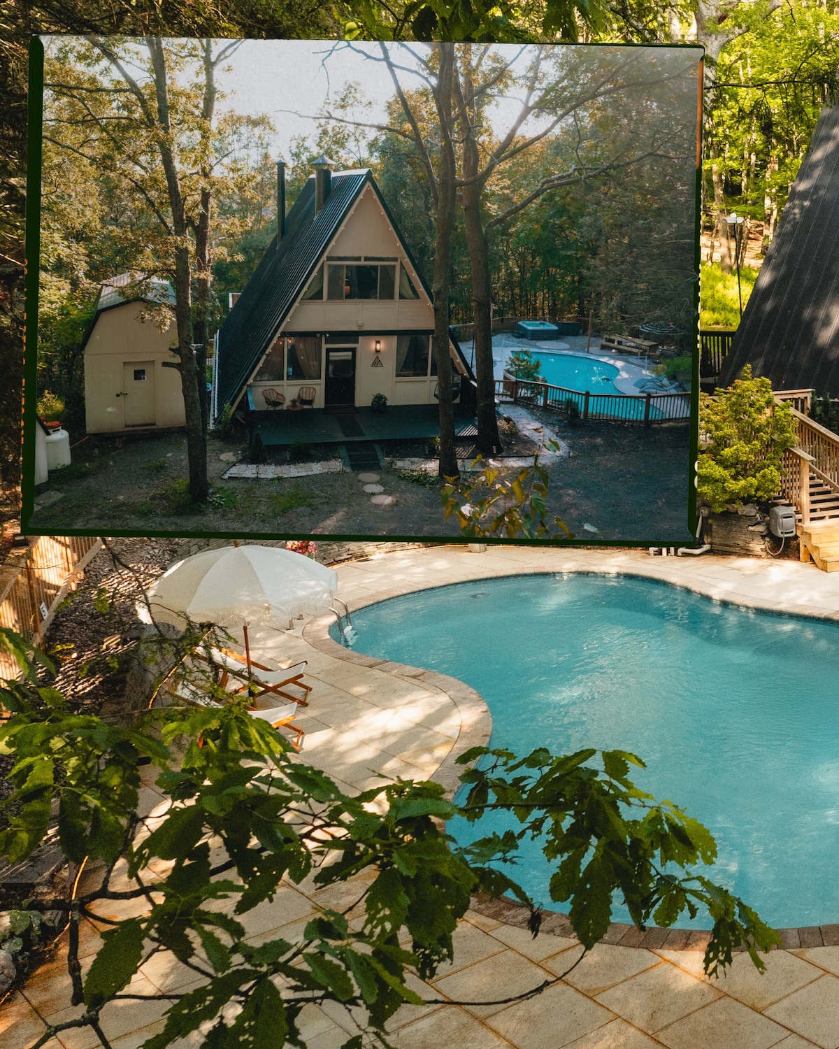 Inbäddad i Poconos bergen är denna ultimata stadsflykt packad med lyxiga bekvämligheter för hela familjen att njuta av allt bara 5 minuter från skidbackarna. Inuti hittar du öppen planlösning med ett kök i Hamptons-stil, 4 vackra sovrum och ett roligt spelrum, medan du utanför kan njuta av utomhusbiografen, den sociala eldstaden, grillarna, den lyxiga bubbelpoolen och så mycket mer! Bo bara 5 minuter till Shawnee Ski Resort, Country Club & Stroudsburg med sina restauranger, shopping och sevärdheter!