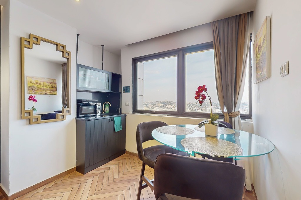 Kosher och lyxig lägenhet med en spektakulär utsikt. Lägenheten ligger på 16: e våningen i en lyxbyggnad med en vårdnadshavare dygnet runt. Du har en häpnadsväckande utsikt över västra Jerusalem. Byggnaden ligger i hjärtat av stadens centrum. Du behöver inte ens en bil eftersom lägenheten ligger mellan två ljusskenor stationer. Du kan nå lägenheten från flygplatsen med tåget rakt på mindre än 45 minuter.