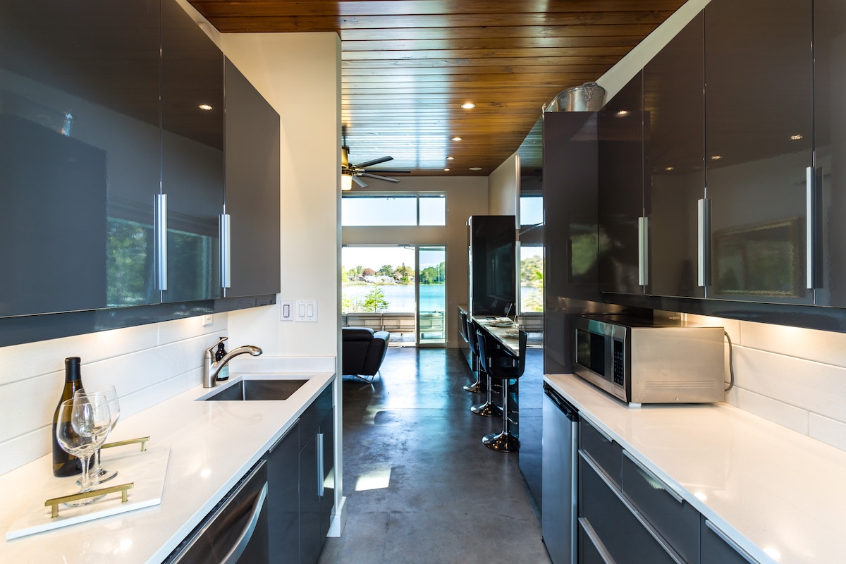 Hip RetroModern Lakefront Cabana med EV-laddare