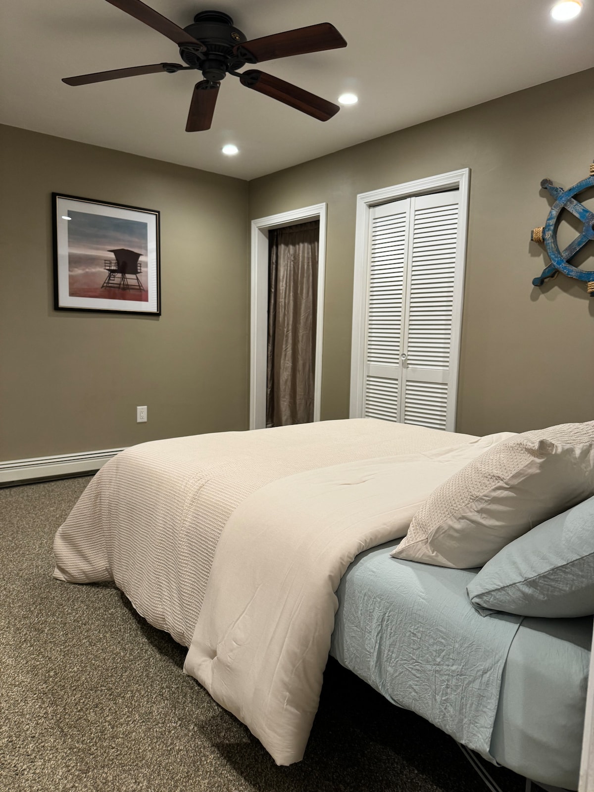 Magiskt ÅRET runt. Läge, läge, LÄGE; bekvämt, modernt nyrenoverat ('21) privat sovrum och familjerum 0,4 mil från grannflodstrand, 0,9 mil från raden av havsstränder, vandringsleder, levande teater, överalltallt. Separat egen ingång. Luftkonditionering. Queen-säng. Uteplats med picknickbord, stolar och hängmatta. Strandstolar tillhandahålls. W/på 5 minuters gångavstånd från bagerier, minigolf, restauranger, shopping, cykelleder, kajakpaddling och mer.
