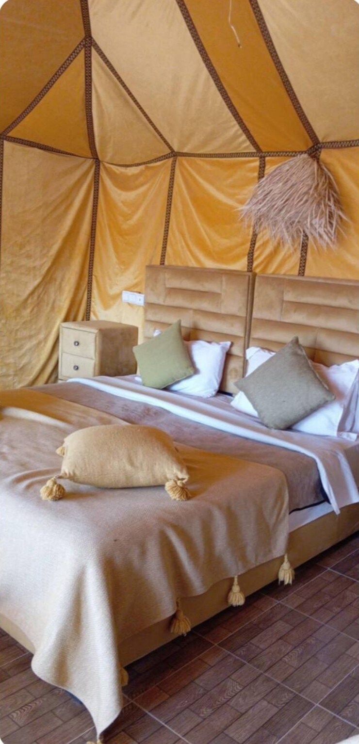 välkommen till vårt nomadläger med nomadisk design, vi erbjuder frukost och middag för dig inklusive pris, och du väljer att komma till lägret med jeep eller kamelvandring (mer information via meddelanden), natt full av ökenenergi med vår berbermusikstil