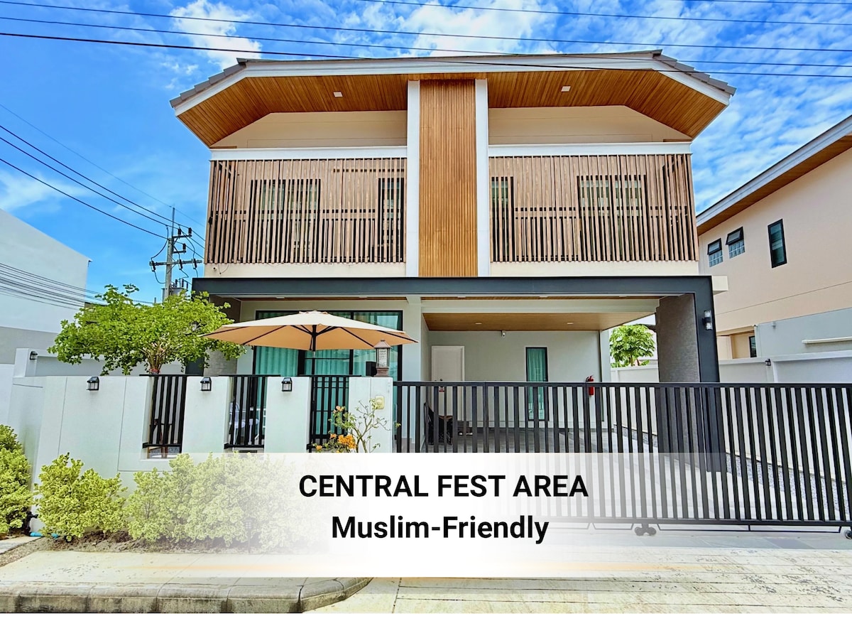 🏠 Entire home 3 bedroom 4 bathroom. 🚗 3-4 car parking, located City Center 🌙 Muslim-friendly home (Prayer room available, separate utensils & kitchenware for halal use. ✅ 3 mins walks to 7-11, mini Big C, local food stalls. Tuk-tuk passing by 🛺 📍3 mins 🚗 to ASEAN night Bazaar, Central Rest, Florida Night Market. 📍7 mins 🚗to Lee Garden 🚗 🚗🚗Parking for up to 3-4 cars ✅ Spacious living room, prayer room & outdoor dining area.