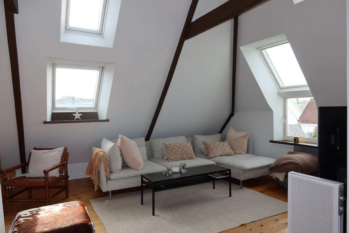 Charmig vindsvåning med sadeltak i centrum