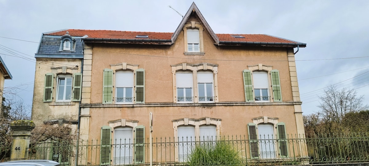 Ljust och rymligt boende i en elegant herrgård belägen bara 5 minuters promenad från centrala Toul, i ett lugnt bostadsområde. Njut av en trevlig och bekväm miljö för din vistelse. Observera att frukost och badlakan inte tillhandahålls, så vi rekommenderar att du tillhandahåller dem. För att bevara lugnet på platsen och grannskapet är inte fester tillåtna.