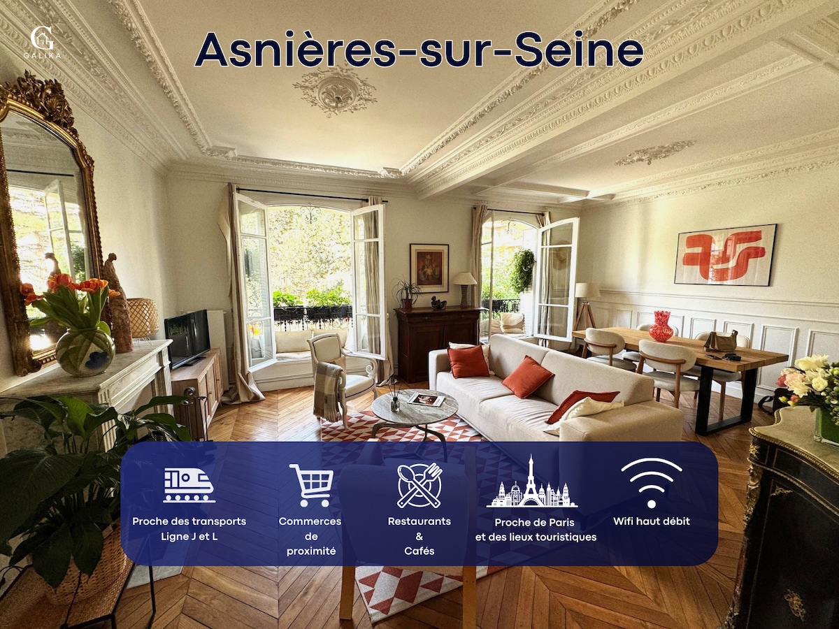 Välkommen till denna rymliga 80 m² lägenhet med en stor 35 m² terrass där du kan njuta av en vacker solnedgång varje kväll. Denna lägenhet är idealisk för familjer eller grupper av vänner. Dess läge för transport är idealiskt, bara 3 minuters promenad från spårväg T2, som går till La Défense på mindre än 10 minuter och förbinder dig med La Garenne Colombes station för direkt tillgång till Saint-Lazare (Paris). Restauranger, kaféer, butiker och en stormarknad ligger mindre än 5 min promenad bort.