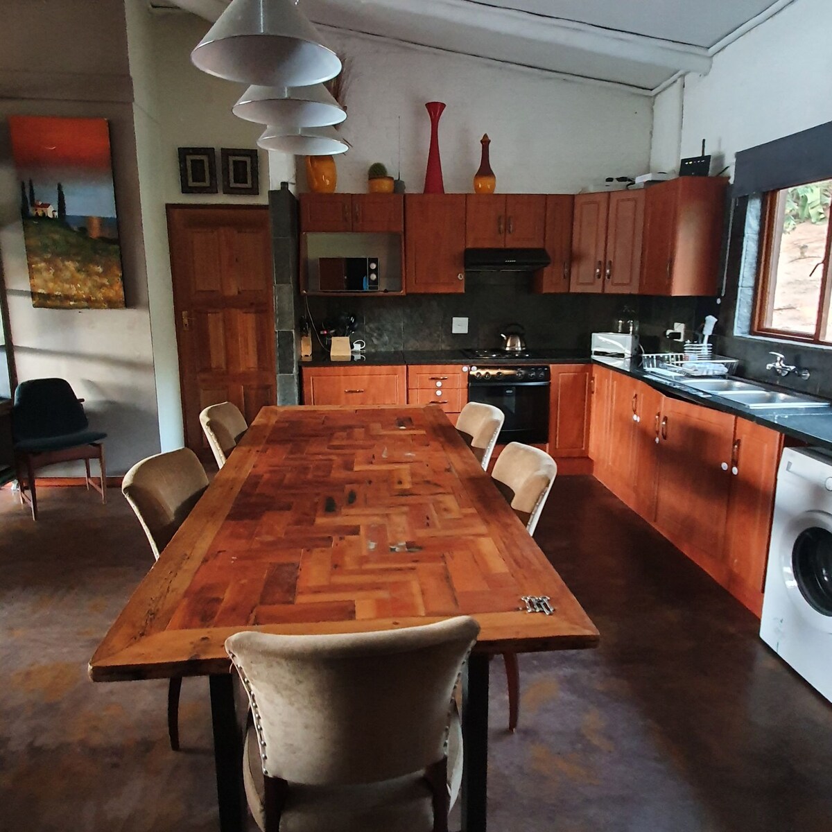 Ta det lugnt på denna unika, lugna semester utanför elnätet. Den avskilda och privata Stone Cottage ligger inbäddad bland frodiga inhemska träd och bredvid en bevattningskanal. Stugan är täckt med halm och byggd av sten och erbjuder fantastisk utsikt över en grönskande trädgård och över en gårdsdamm. Allt på fastigheten, från maten vi odlar till hur vi lever och genererar el, bygger på att vara miljömässigt hållbart. Sydafrikas ledande litografistudio, The Artists' Press, ligger också här.