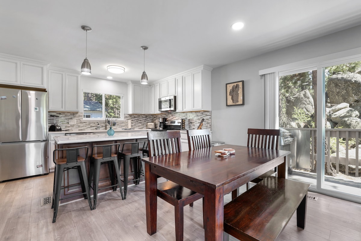 Erkänd som en "Airbnb Superhost" och "Gästfavorit", värd i 12 år! Allt din grupp behöver för att kalla Lake Tahoe sitt hem under resan. 2 privata rum med dubbelsängar, och ett stort, öppet loft med en högkvalitativ, läderbäddsoffa, och 2 fulla badrum. Familjerum, fullt utrustat kök, matplats och en stor altan. 1 dedikerad parkeringsplats och massor av gatuparkering. Nära till allt i SLT.