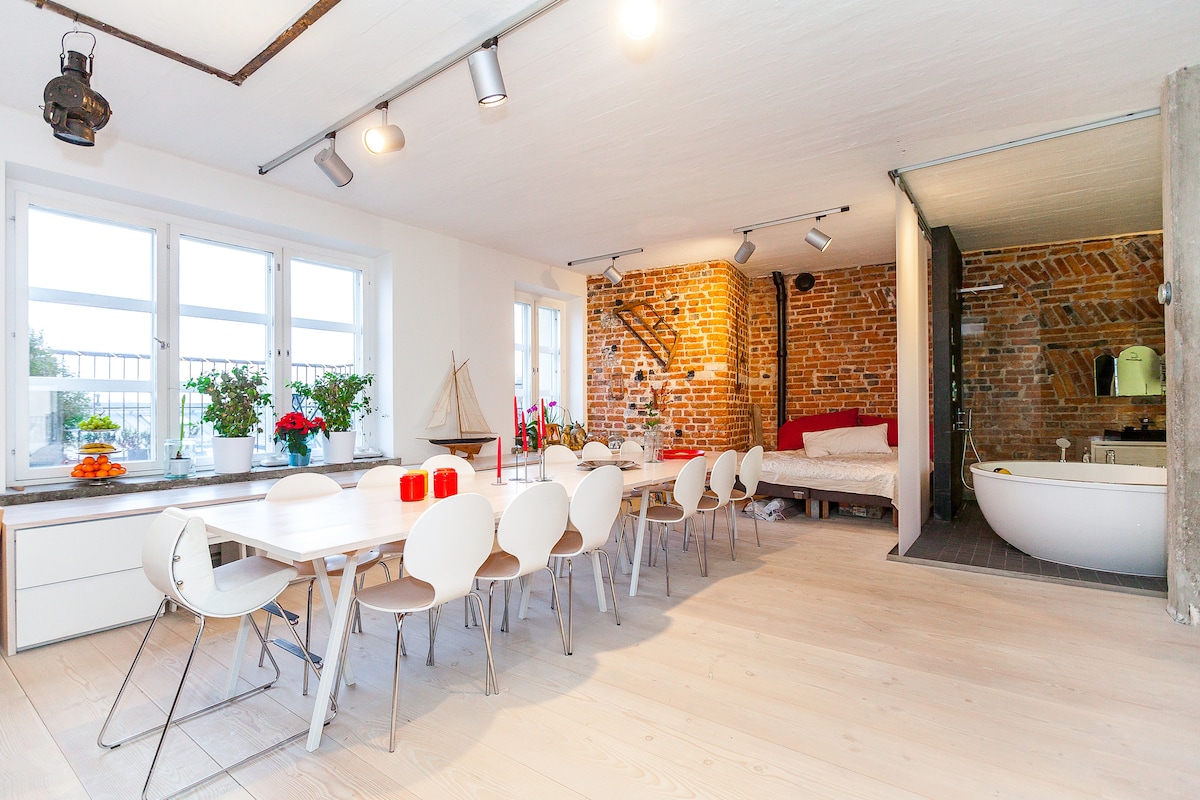 Snyggt 84 m2 loft med bastu/spa. Arc.Steven Holl
