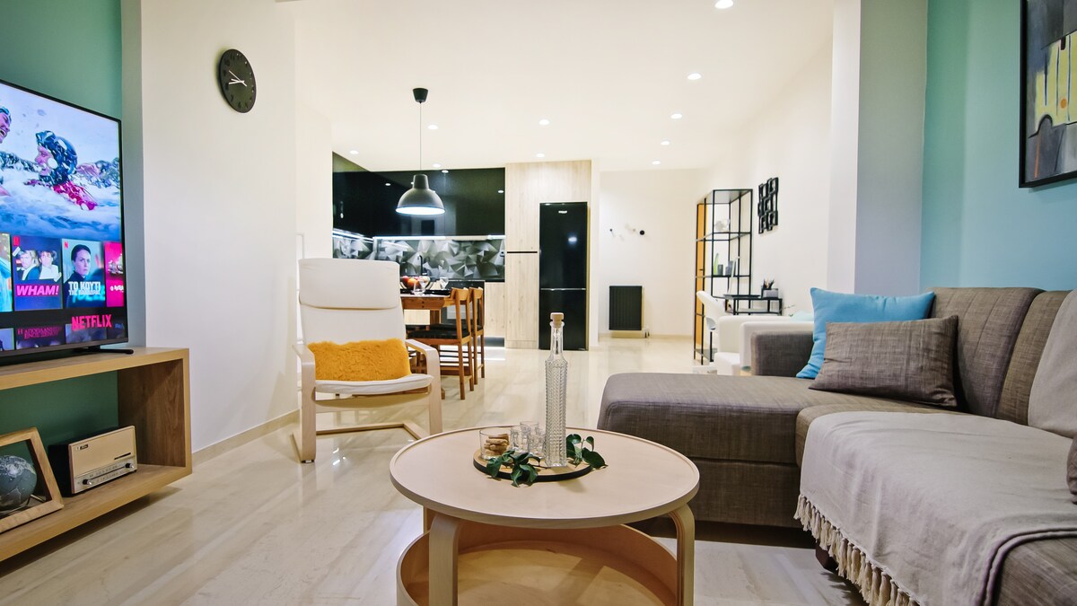 Denna eleganta lägenhet är perfekt för en oförglömlig vistelse i Heraklion. Den har ett privilegierat läge. Den fantastiska utsikten, det unika utrymmet och den kretensiska gästfriheten kommer att få dig att känna dig som hemma. Rymlig (45 kvadratmeter), modern och ger dig allt en resenär kan behöva. Gratis och snabbt Wi-Fi, fullt utrustat kök, tvättmaskin i lägenheten och privat balkong med havsutsikt för att njuta av din frukost och kaffe.