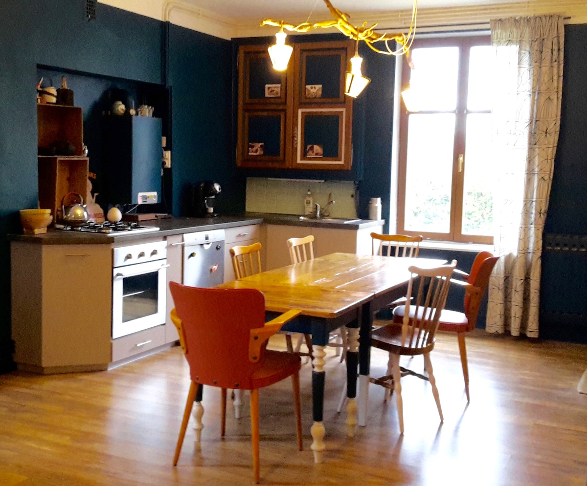 Välkommen! Besök regionen genom att lägga dina väskor i en grön låda som ligger i de vackra Côtes de Meuse. Vårt hus på 90 m2 kommer att välkomna dig så varmt som möjligt, det ligger i en lugn gränd och har en skyddad terrass med utsikt över en stängd trädgård. Köket är öppet mot vardagsrummet med en ny bäddsoffa (160); sovrummet har en dubbelsäng (160) och en bäddsoffa (140); toaletten och duschen är separata.