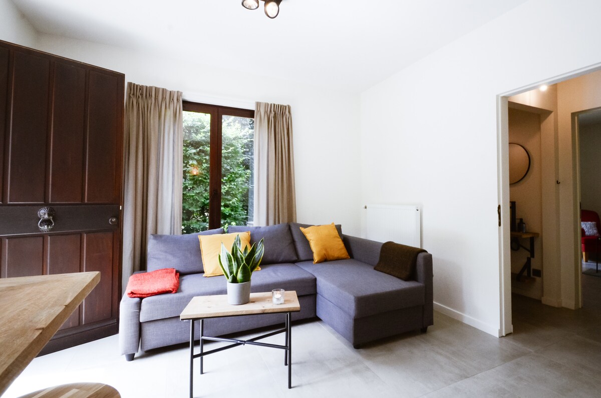 Mitt namn är Hanne (musiker och möbeltillverkare) och jag bor med mina två söner i mysiga Herenthout. Stugan i vår trädgård har renoverats på ett unikt sätt med så många material och möbler som möjligt. Möblerna byts regelbundet och är också till salu! Det är ett öppet utrymme med separat badrum och toalett. Sovplatsen kan stängas med gardin.