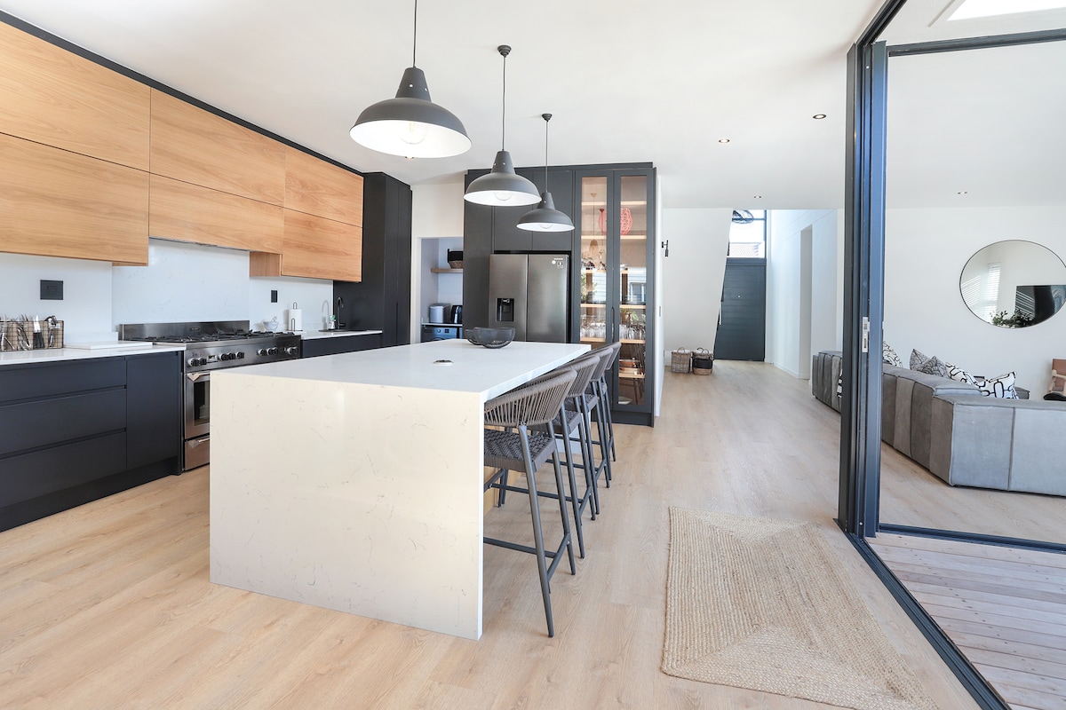This stylish 5 bedroom, 5 en-suite bathroom beach bungalow provides the ideal setting for a relaxed vacation at the majestic Hermanus coast. While away the hours pool-side, or enjoy the mountain glow at sun-set around the fire-pit with loved ones. Just a short walk to the beach, The Bungalow is what holiday dreams are made of. Enjoy the fire-place & local wine-farms in the winter, or enjoy the outdoor chill areas in the summer-time. Hello poolside barbecues! Solar-powered ☀️