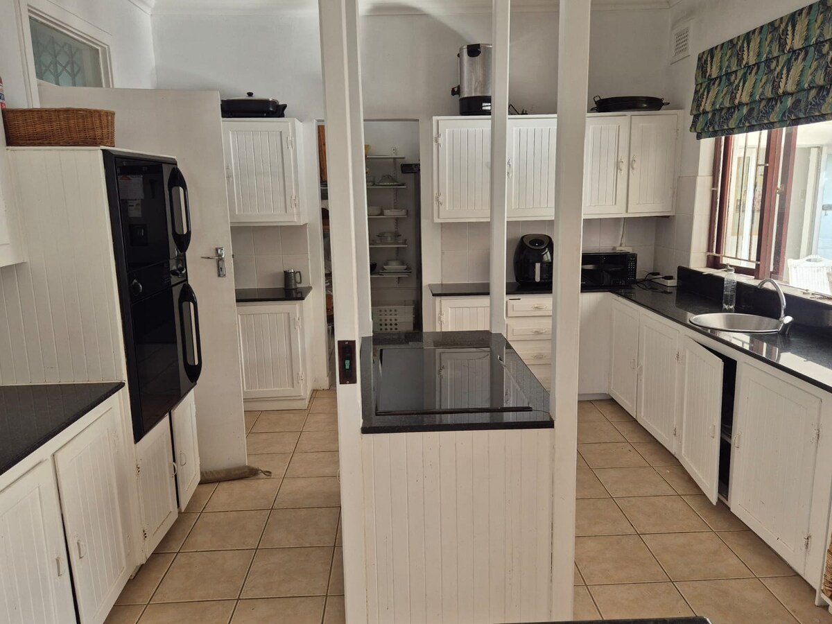 En utsökt, nyrenoverad, modern lägenhet, helt för dig själv, med hisnande utsikt och direkt tillgång till stranden. Utrustad med en växelriktare och gasspis för lastning. Detta boende med 3 sovrum är rymligt och luftigt och erbjuder dig en av de mest magiska vyerna över Indiska oceanen. Valvakt från din soffa och titta på soluppgången från din säng. Beläget i en säker egendom med tennisbanor, ett djungelgym, studsmattor, braai faciliteter, kan du njuta av den ultimata strandsemestern.